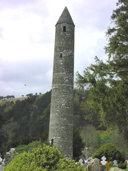 | The old monastery of Gelndalough, which St. Kevin founded in the 6th century, flourished despite intermittent plundering raids until early 17th century. | ![]() Stone-roofed monastery |