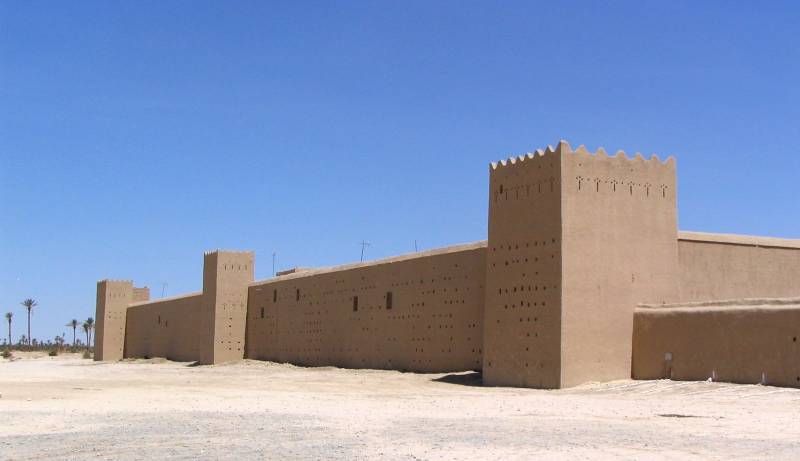 According to historical sources, the Ksar Abbar was a royal residence where the sultan Moulay Abderrahman kept some of his riches, protected by a series of walls and a cannon or two, and guarded by 500 slaves. The building also housed an enormous harem in which the wives of the deceased sultans were kept. |