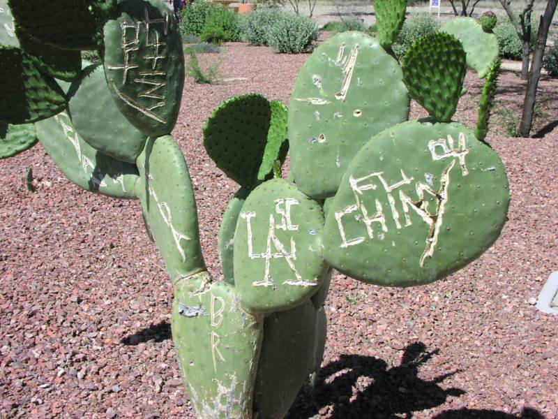 ![]() Graffiti on cactus pads |