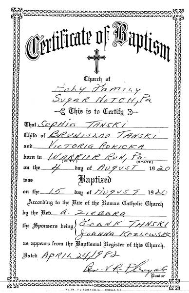 Sophia Mary Tanski (daughter of Bronislaw Tanski and Wiktoria
