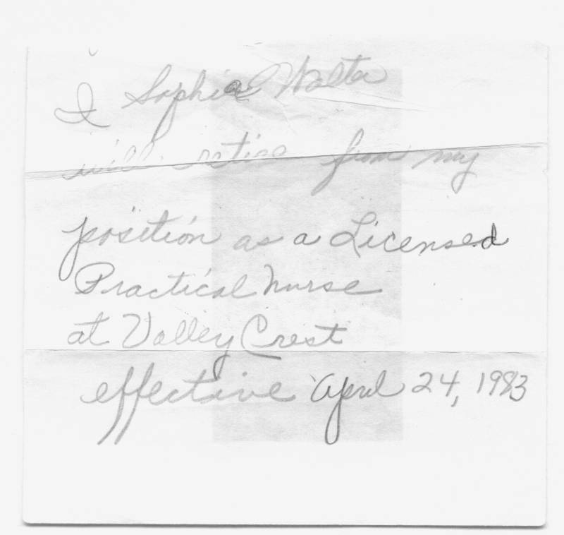 she was a licensed practical nurse at Valley Crest Nursing Home,
